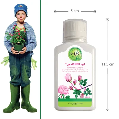 کود مایع کامل گلدهی گیلدا مدل پتاسیم بالا حجم ۱۲۰ میل، مخصوص افزایش شکوفهدهی، جلوگیری از ریزش غنچه و افزایش ماندگاری گل در انواع گیاهان زینتی، شمعدانی، بگونیا، اطلسی و… | جذب سریع و استفاده آسان
